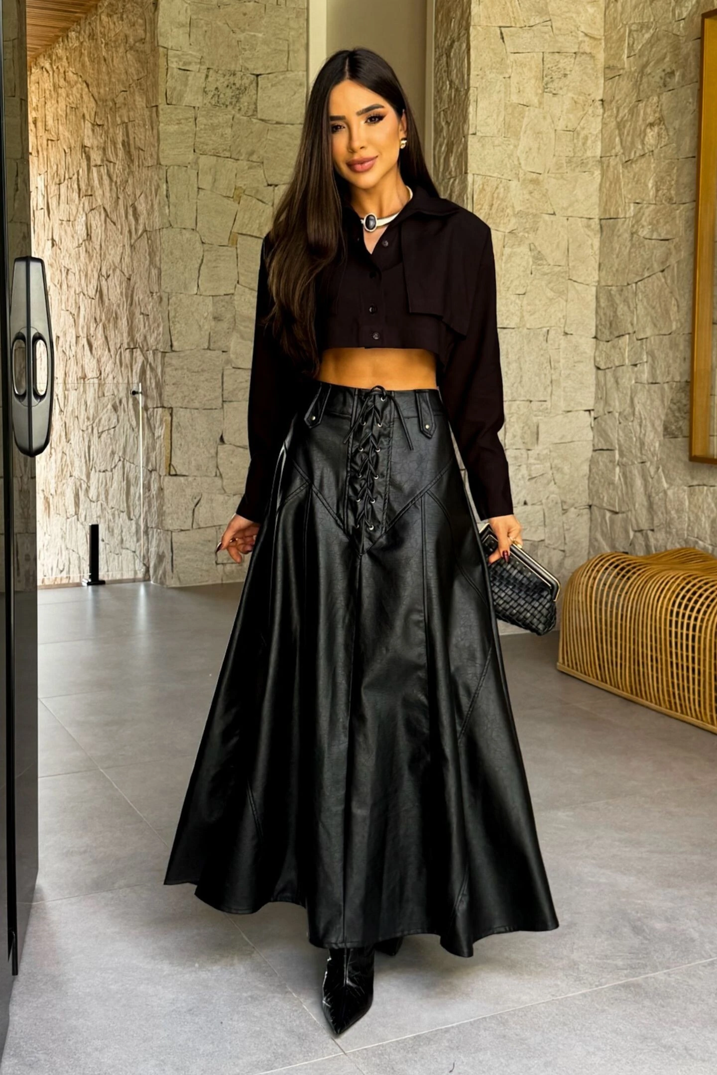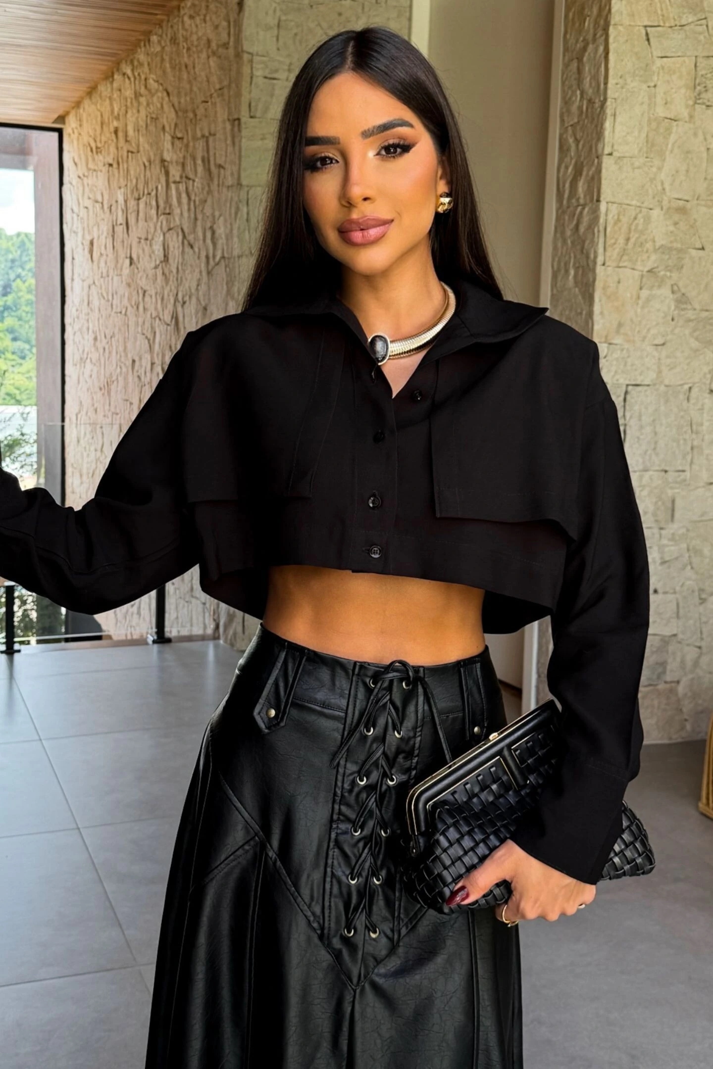 Camisa Cropped Gola Preta vendida separadamente.