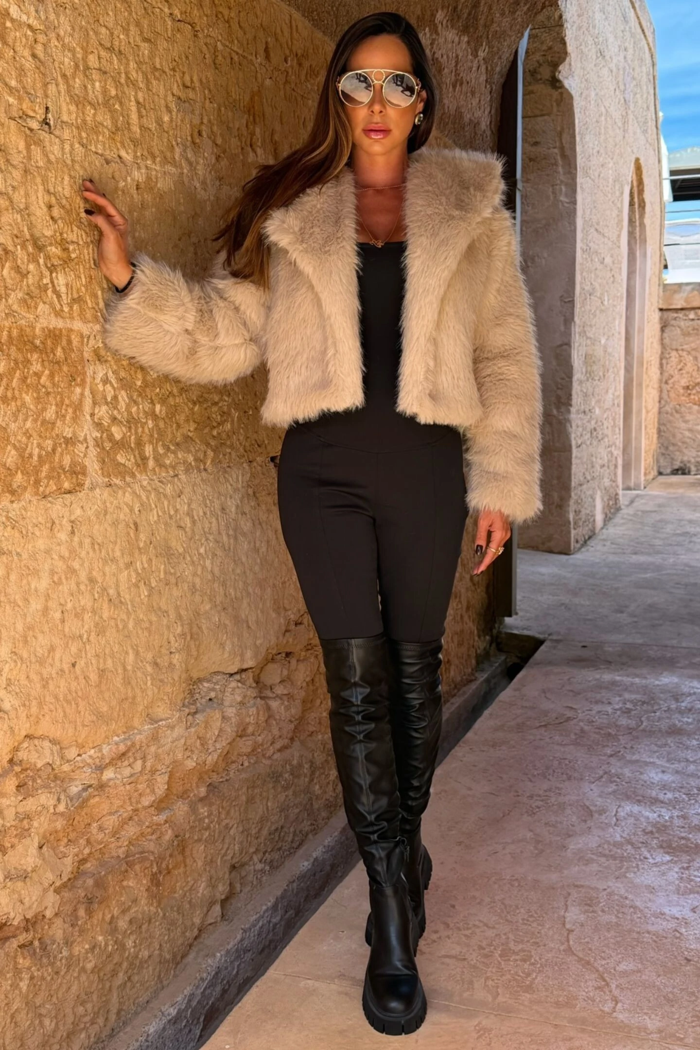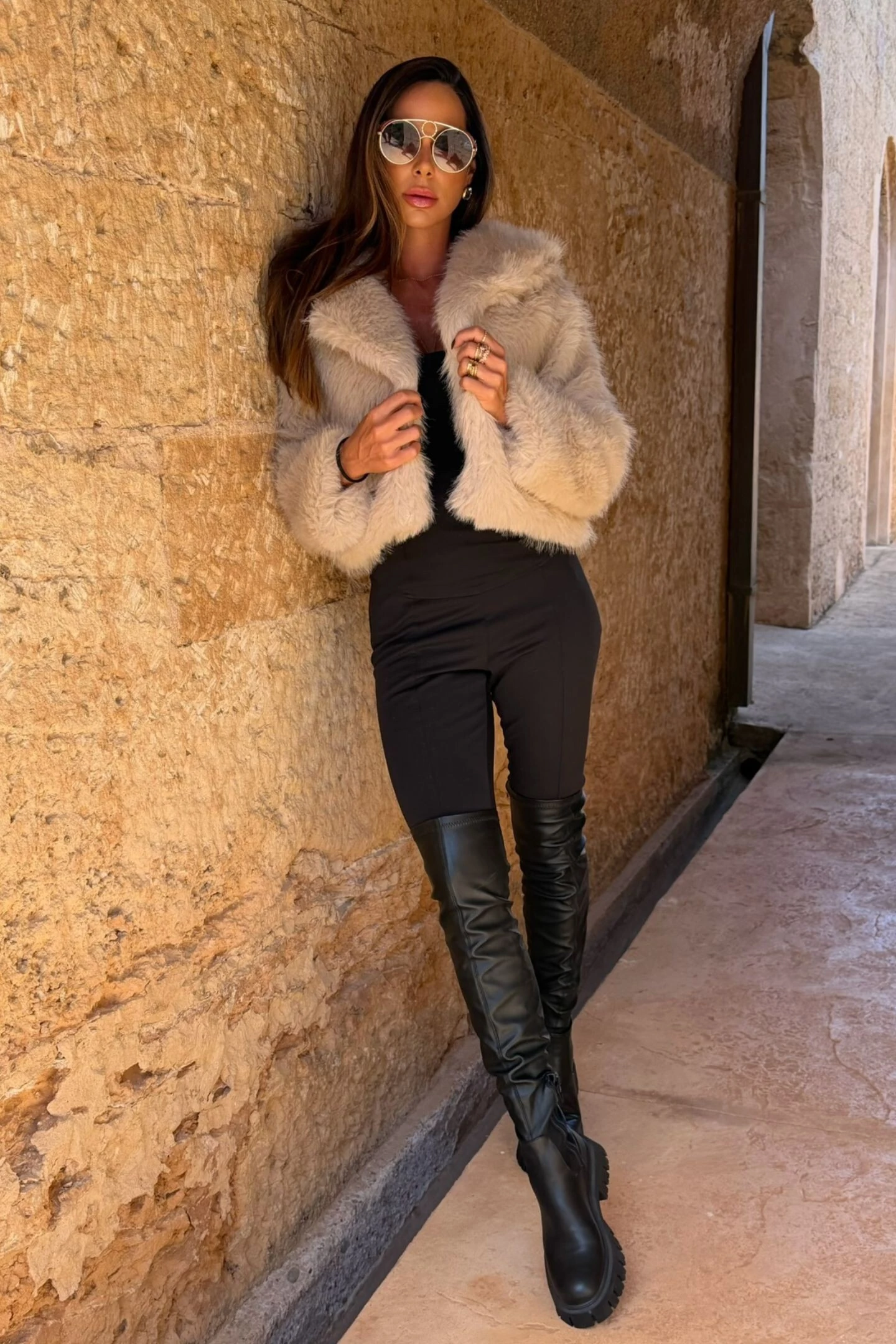 Casaco off white cru em pelo sintético com toque macio, quente e extremamente confortável sobre a pele, ideal para os dias mais frios.